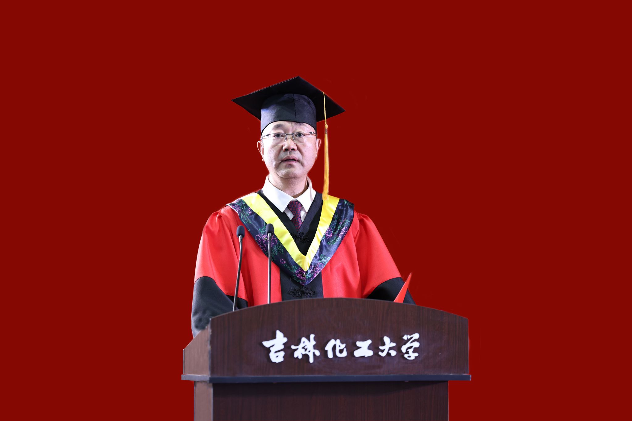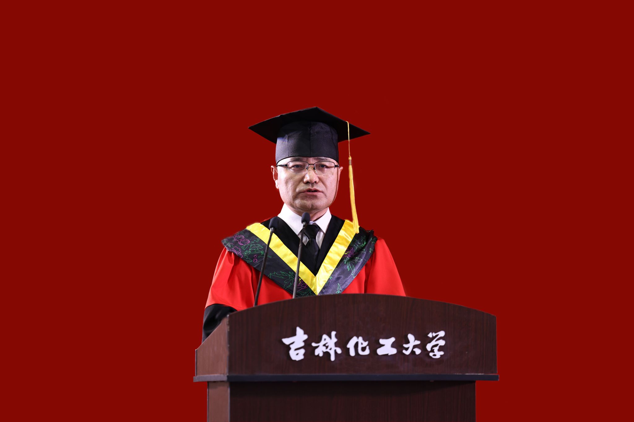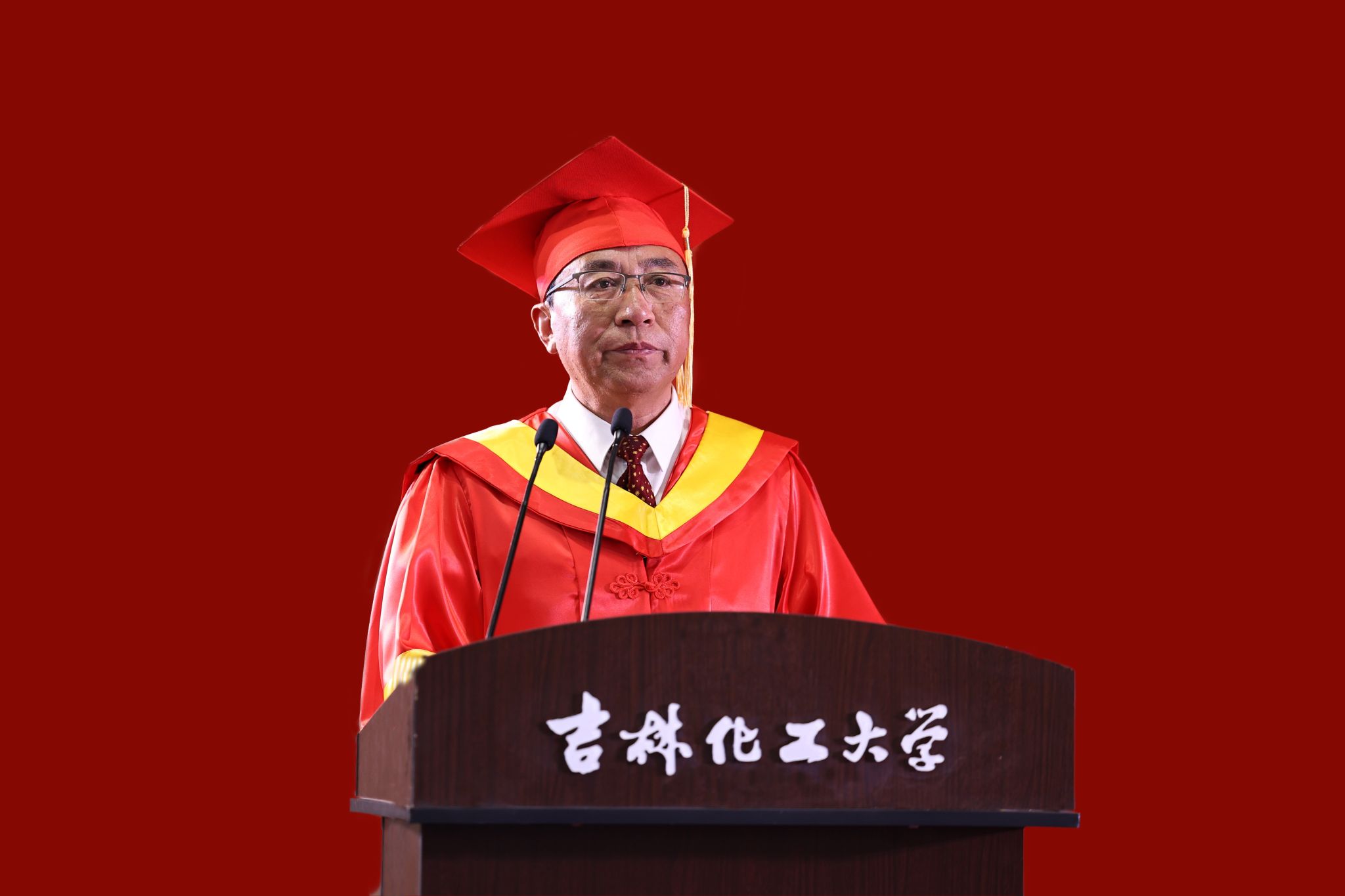 艾学忠为毕业生代表正冠扶苏并授予学位,为优秀校友代表于广臣、宋德武颁发纪念版毕业证书。他在讲话中对毕业生提出四点希望,要以科技报国之心擎起时代旗帜。将个人理想融入中国式现代化的壮阔征程,让青春在科技自立自强的熔炉中百炼成钢。要在新能源材料、智能化工、生物医药等战略领域勇闯“无人区”,在突破“卡脖子”技术的攻坚中智探“创新峰”,以吉化智慧赋能强国建设,以绿色科技守护美丽中国,书写新时代工程师的使命担当。要以精益求精之魂传承工匠精神。要弘扬学校扎根工程教育六十七载的深厚底蕴,在产业一线中锤炼“毫厘不差”的严谨,在技术攻关中秉持“千万锤成一器”的执着。无论身处实验室还是生产车间,始终以“显微镜下见功力”的追求锻造大国工匠的脊梁。要以坚韧不拔之志开拓人生疆界。面对技术瓶颈的壁垒、产业变革的浪潮、人生际遇的起伏,当以吉化人特有的韧性与智慧,于挑战中捕捉机遇,在困境中淬炼成长。要以守正创新之姿引领未来风潮。既要坚守科学伦理与工程规范的底线,敬畏自然、尊重生命;更要敢于突破思维藩篱,拥抱学科交叉融合,探索前沿未知。在传承中锐意求新,在变革中坚守正道。以批判性思维洞察本质,以创造性思维开辟新局,成为定义未来、塑造变革的先行者。